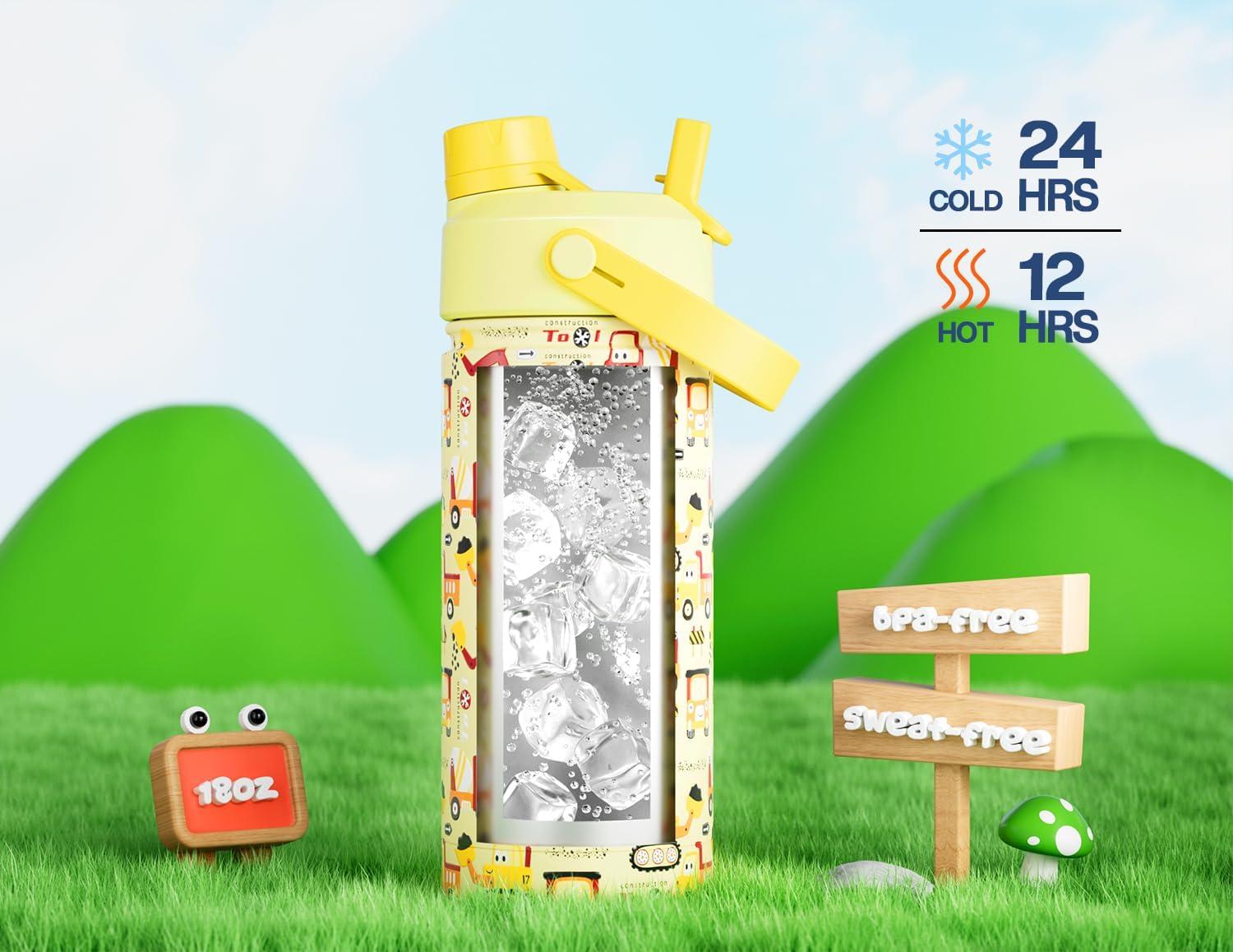 Kid-Safe, Parent-Approved: Made from tough 18/8 stainless steel with BPA-free materials, this bottle is safe, durable, and easy to clean. Hand wash only for best results.