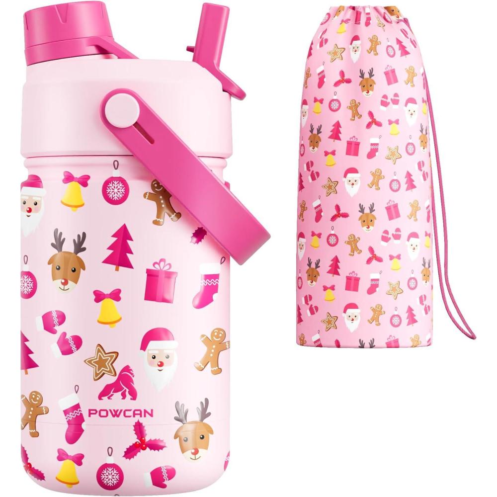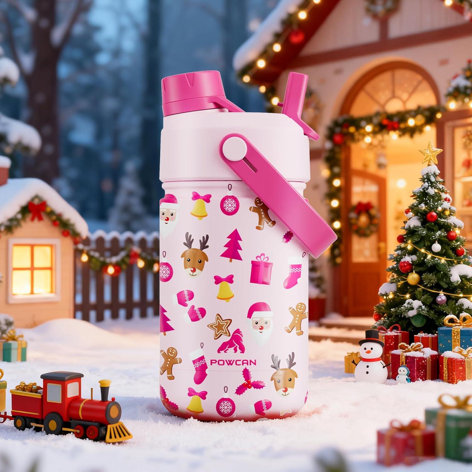 18 oz Kids Stainless Steel Water Bottle: Spill-Proof, Insulated Cup with Straw Spout Lid, BPA-Free, Car Cupholder Friendly, Durable, 24H Cold for Camping, Sports, Birthday Gift for Boys (Dinosaur-Era)(Santa's Sweet Squad)