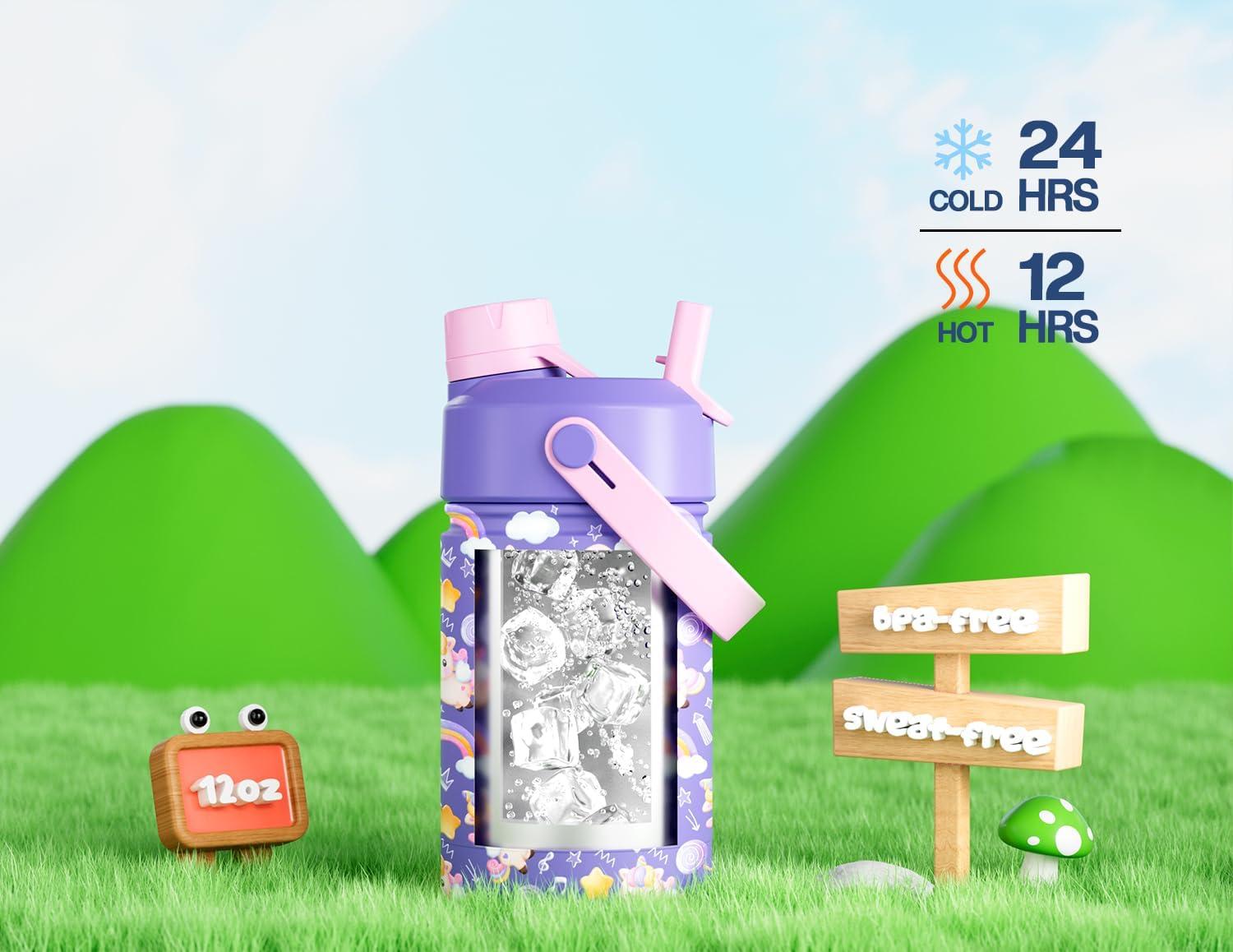 All-Day Refreshment: Double-wall vacuum insulation keeps drinks cold for up to 24 hours or warm for 12. Whether it's water, juice, or cocoa, kids enjoy every sip at just the right temp.