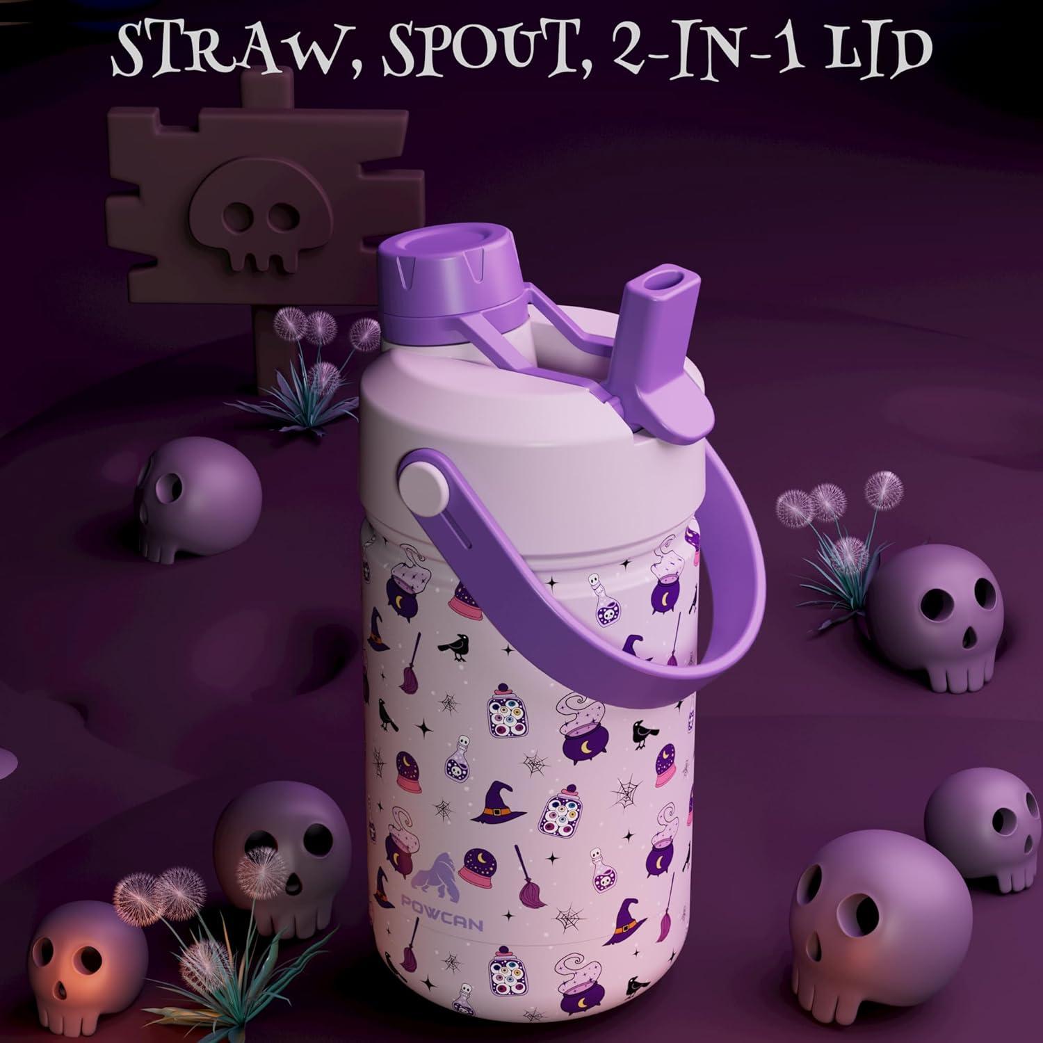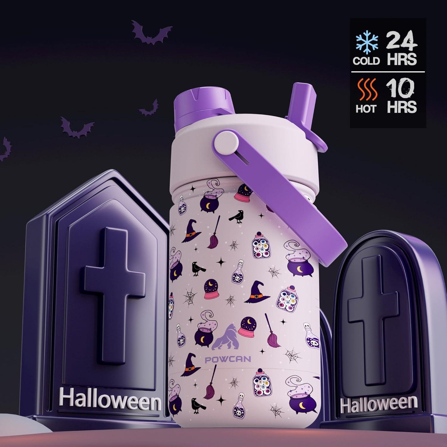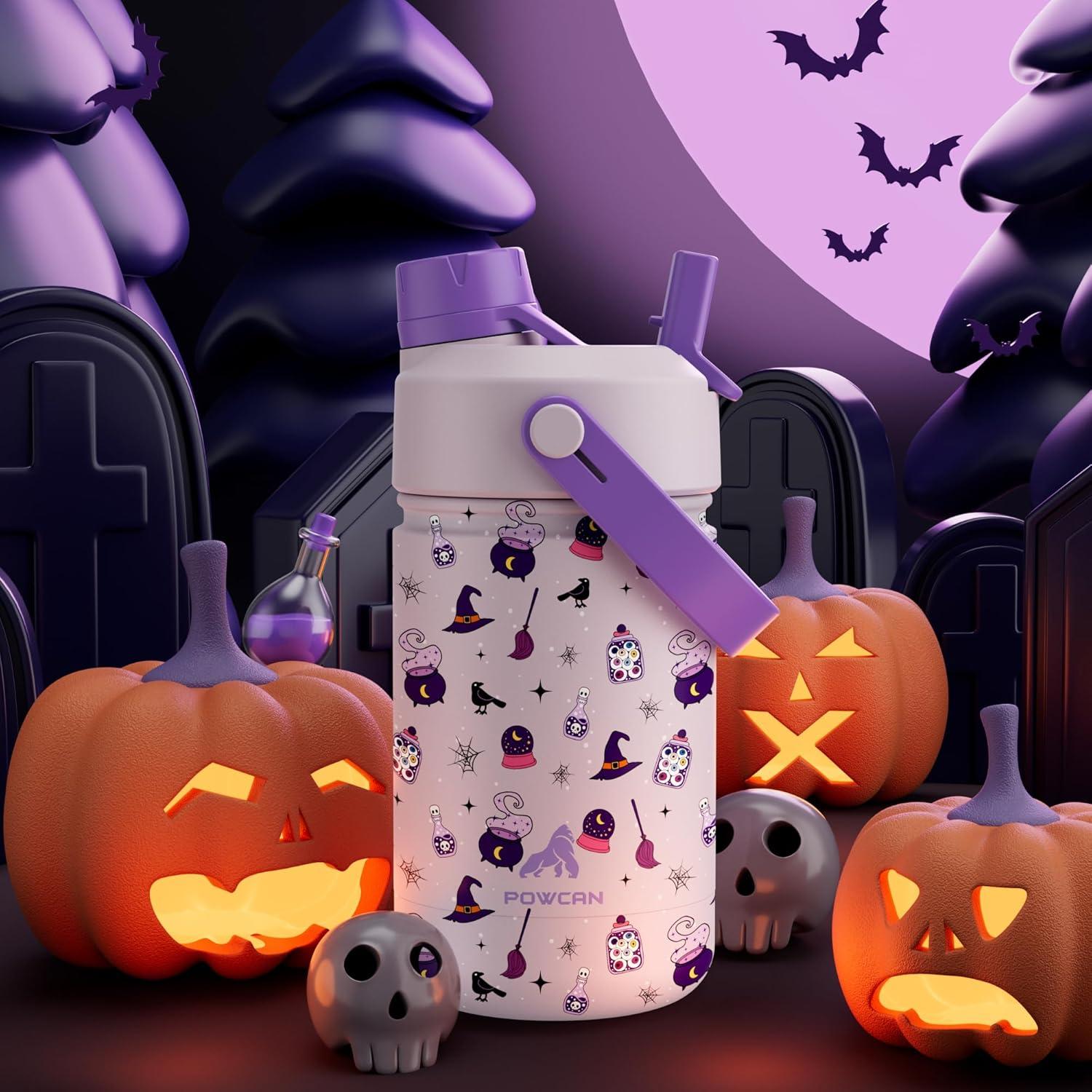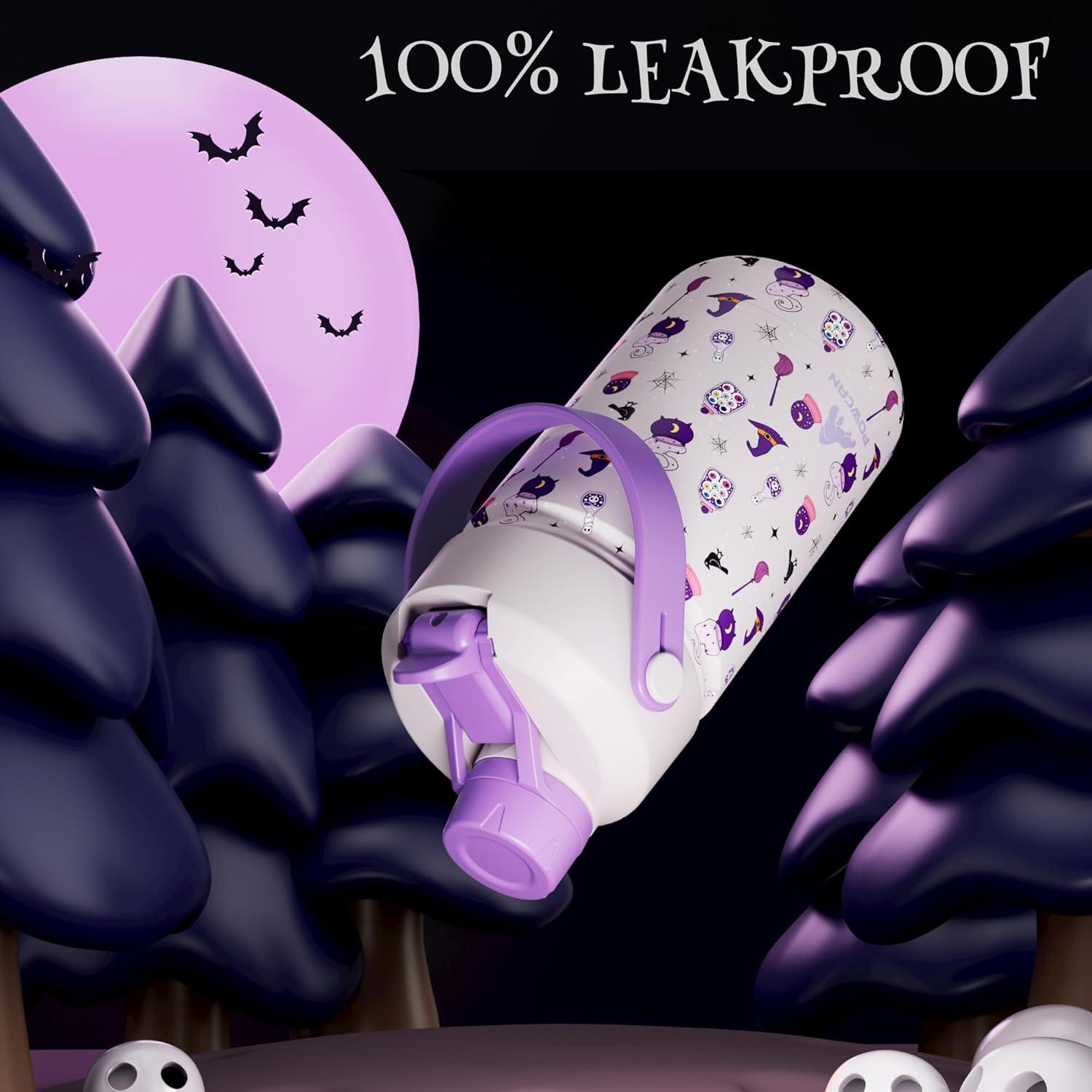 18 oz Kids Stainless Steel Water Bottle: Spill-Proof, Insulated Cup with Straw Spout Lid, BPA-Free, Car Cupholder Friendly, Durable, 24H Cold for Camping, Sports, Birthday Gift for Boys (Dinosaur-Era)(Witching Hour (with Carrier Bag))