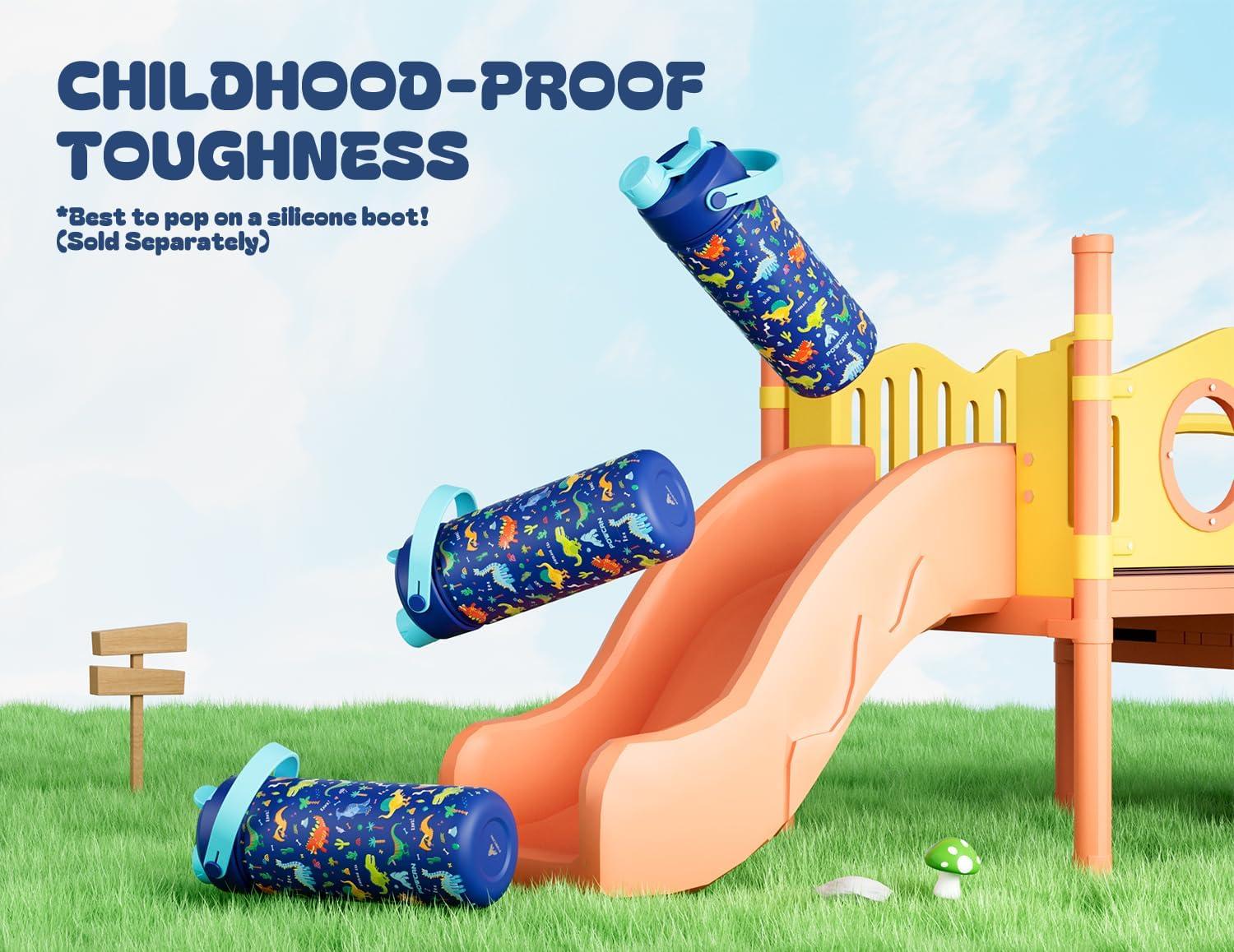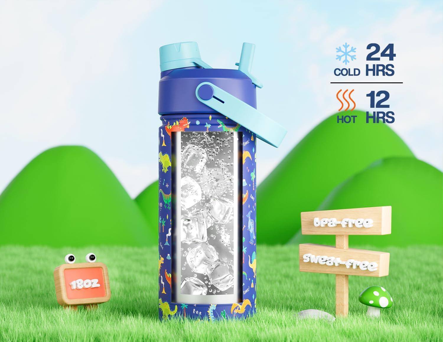 18 oz Kids Stainless Steel Water Bottle: Spill-Proof, Insulated Cup with Straw Spout Lid, BPA-Free, Car Cupholder Friendly, Durable, 24H Cold for Camping, Sports, Birthday Gift for Boys (Dinosaur-Era)(Dinosaur-Era)