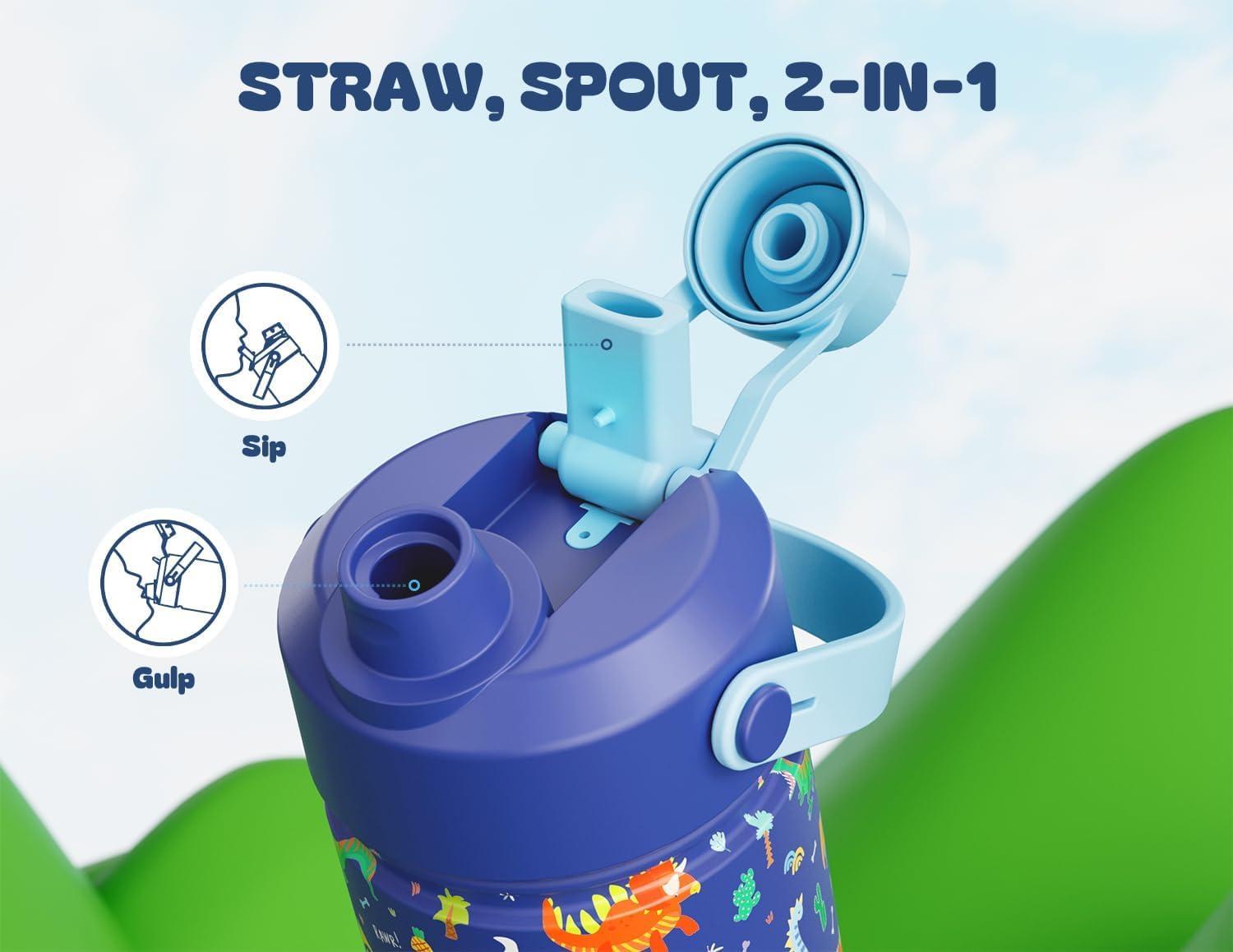 2-in-1 Leakproof Lid: Kids can sip with the straw or take a quick gulp – whatever they prefer. The secure lid prevents leaks in car seats, tote pockets, or lunch bags, making it a parent favorite.