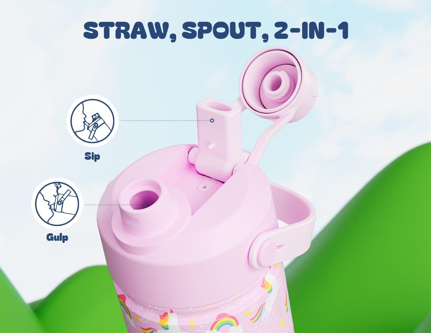 2-in-1 Leakproof Lid: Switch between a straw sipping or quick gulping with a leak-proof lid; No spills in backpacks, car seats, or lunchboxes – parents will appreciate the mess-free design.