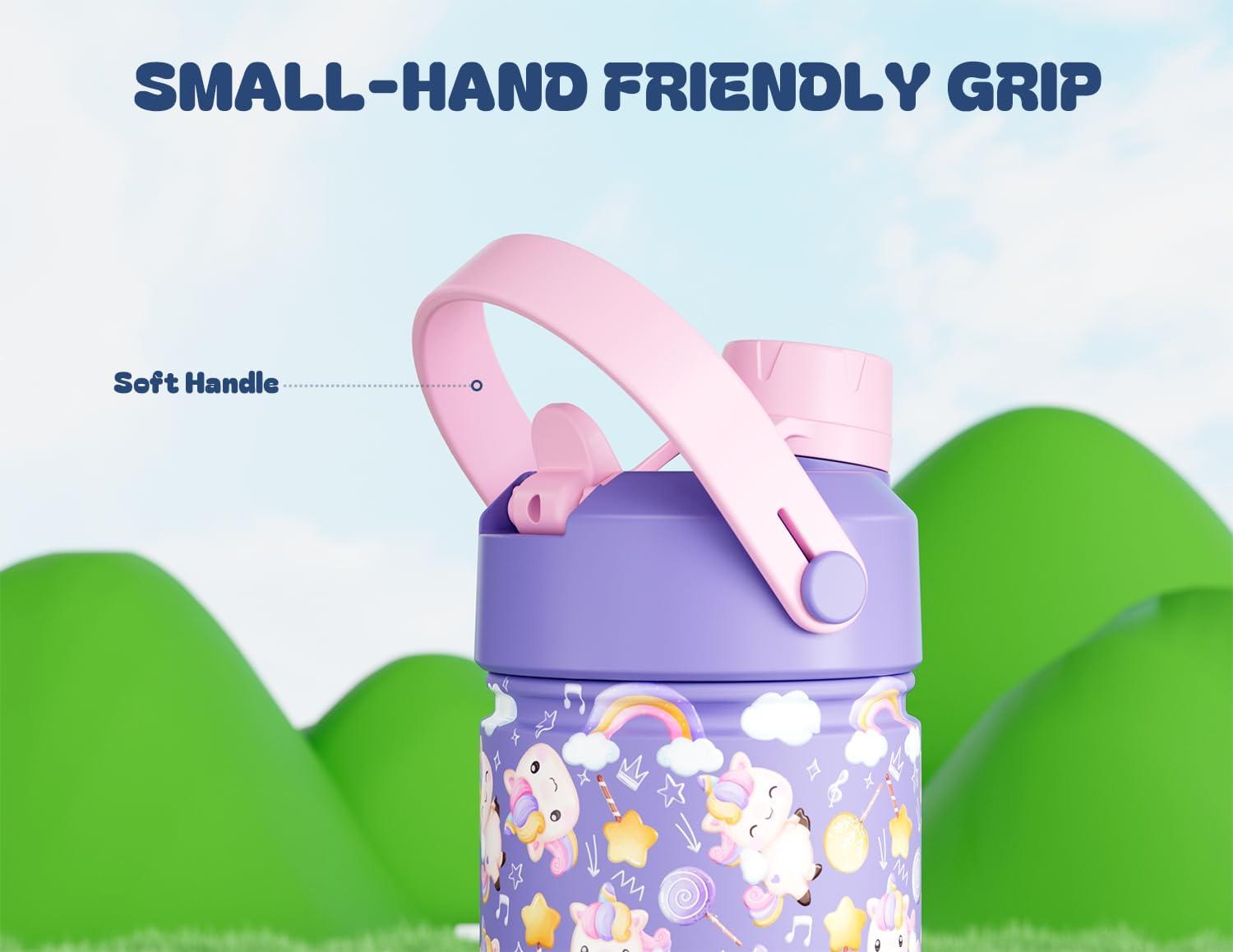 18 oz Stainless Steel Water Bottle for kids: Leakproof, BPA-Free, Easy Carry, Backpack Friendly, 24H Cold, Reusable Insulated Cup, Durable Straw Spout Lid for Sports, Adventures, Camping (Turbo Racer)(Unicorn Jam)