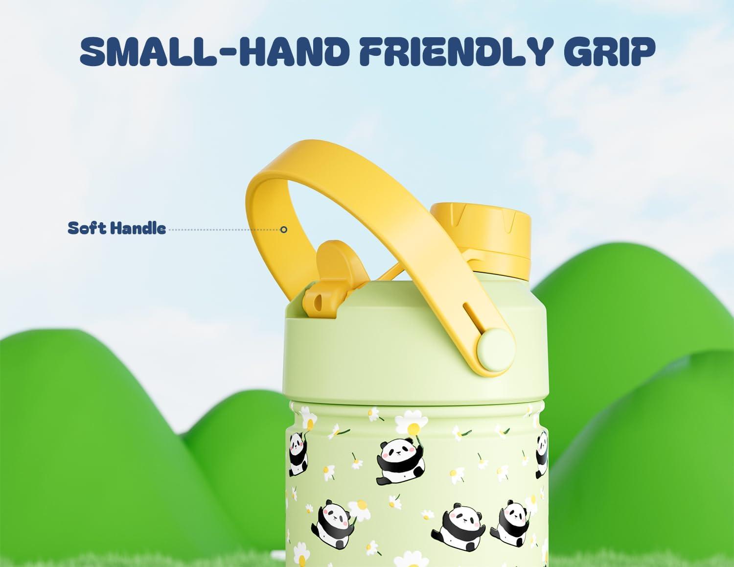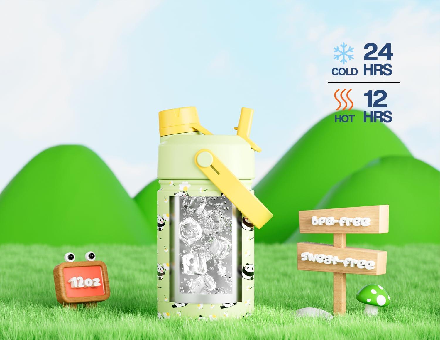 POWCAN 18 oz Insulated Water Bottle with 2-in-1 Straw and Spout Lid, Keep Cold 24H, Leak-Proof, Fits in Car Cup Holder, Stainless Steel Water Bottle for Sports, Travel, and School (Sea Breeze)(Panda Pals)
