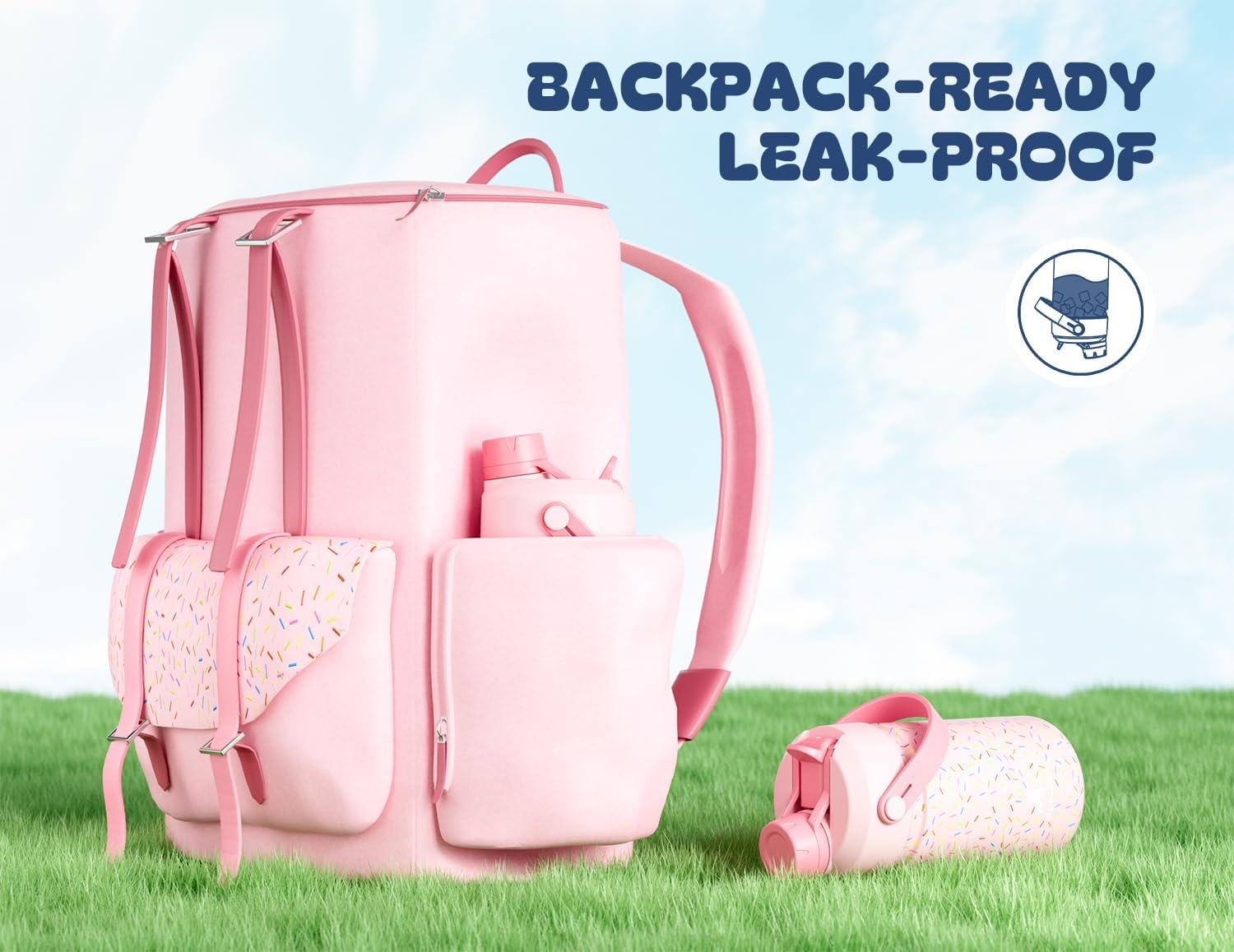imagePOWCAN 18 oz Insulated Water Bottle with 2in1 Straw and Spout Lid Keep Cold 24H LeakProof Fits in Car Cup Holder Stainless Steel Water Bottle for Sports Travel and School Sea BreezePink Confetti