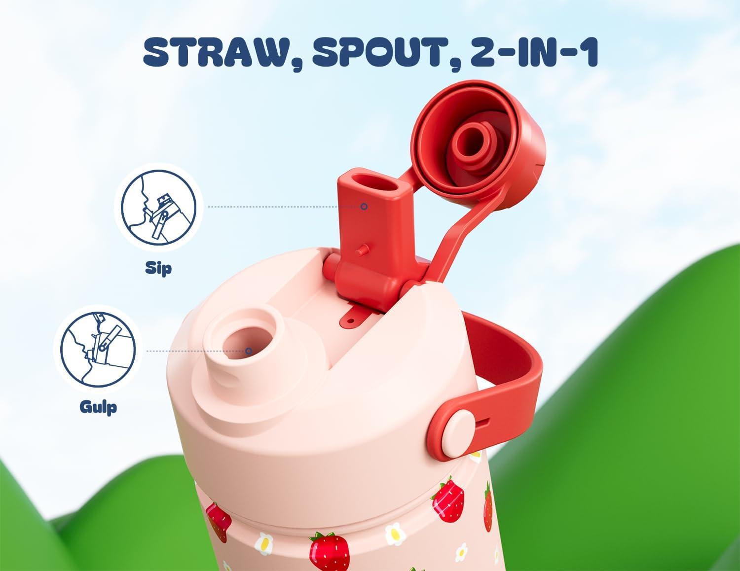 POWCAN 18 oz Insulated Water Bottle with 2-in-1 Straw and Spout Lid, Keep Cold 24H, Leak-Proof, Fits in Car Cup Holder, Stainless Steel Water Bottle for Sports, Travel, and School (Sea Breeze)(Strawberry Daisy)