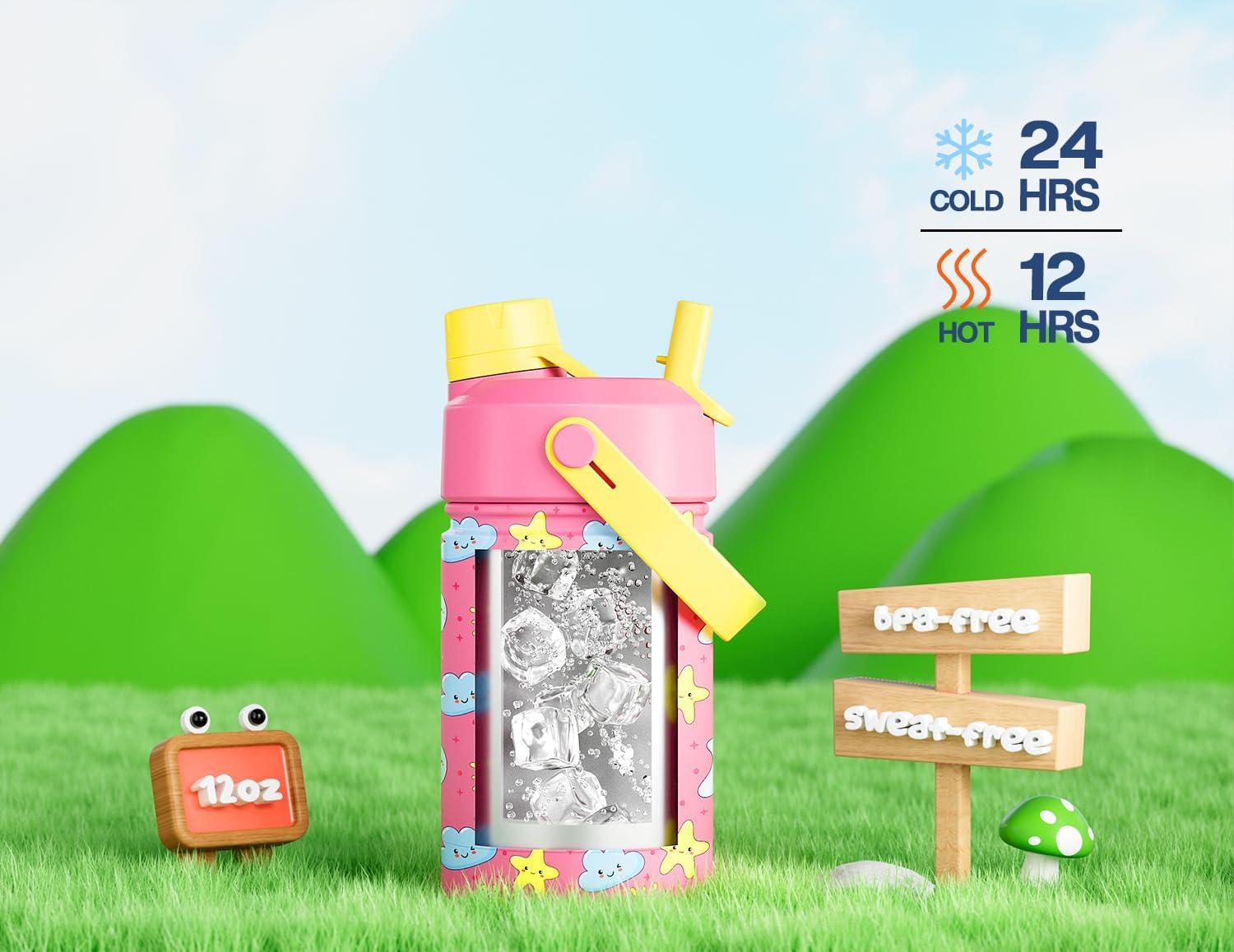 POWCAN 18 oz Insulated Water Bottle with 2-in-1 Straw and Spout Lid, Keep Cold 24H, Leak-Proof, Fits in Car Cup Holder, Stainless Steel Water Bottle for Sports, Travel, and School (Sea Breeze)(Sunny Dreams(with Carrier Bag))