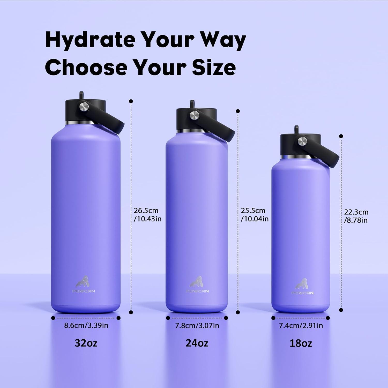 POWCAN 24 oz Slim Insulated Water Bottle with Straw: Leakproof, Keep Cold 24H, Cupholder Friendly, Top Handle, BPA-free, Stainless Steel Water Bottle for Sport, Travel, School, Gym (Midnight Black)(Twilight Night)