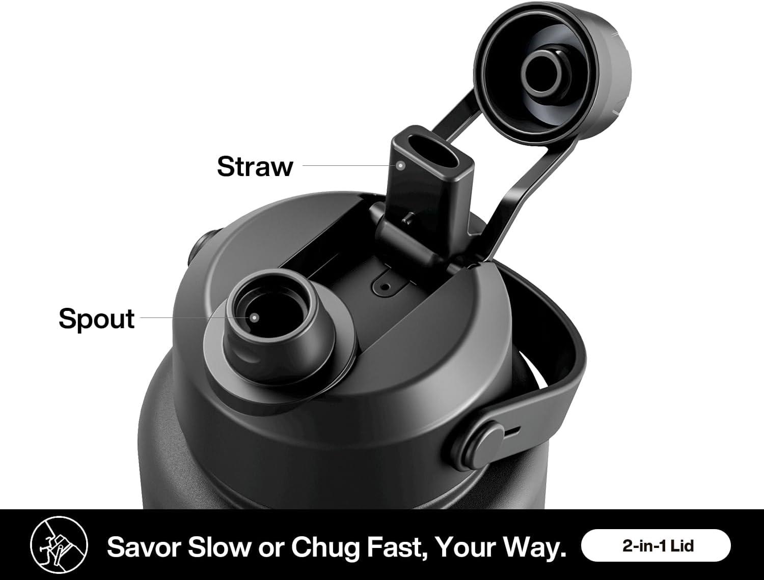 Versatile 2-in-1 Lid: Features a straw for easy sipping and a spout for effortless pouring or chugging; simplifying beverage access whether it's a hot coffee or a cold drink