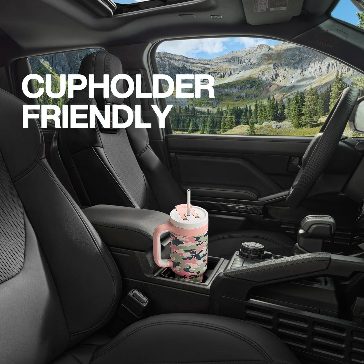 On-the-go buddy: Cruise through with sips, without breaks; Our 40 oz tumbler with handle fits most car cupholders,less refills for endless road fun