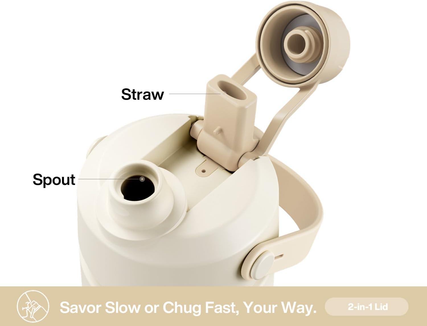 Versatile 2-in-1 Lid: Features a straw for easy sipping and a spout for effortless pouring or chugging; simplifying beverage access whether it's a hot coffee or a cold drink