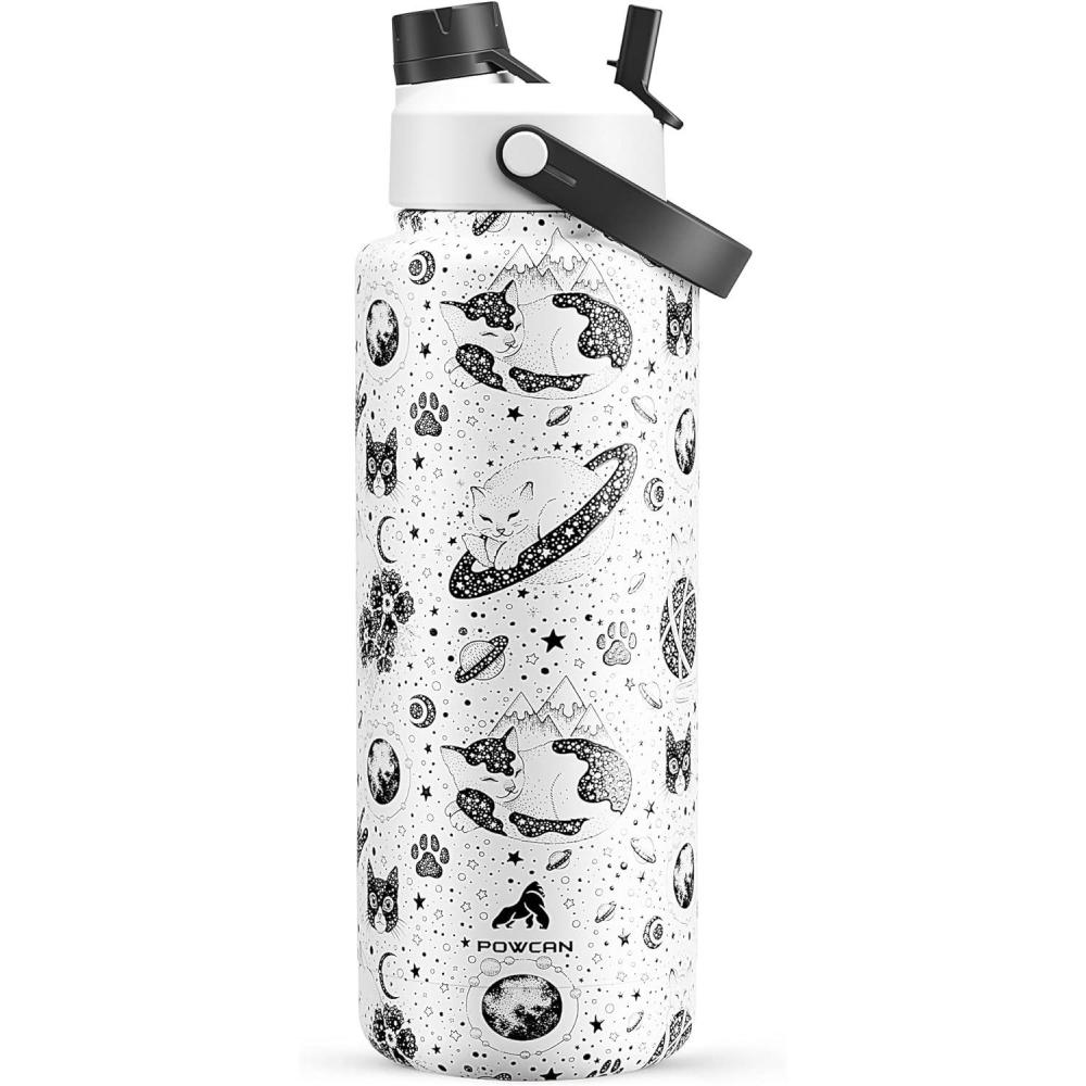 POWCAN 40 oz Insulated Water Bottle with 2-in-1 Straw and Spout Lid, Keep Cold 24H, Leak-Proof, BPA-Free, Double Wall Stainless Steel Water Bottle for Sports, Gym, Travel, and School (Be Free)(Oracle Kittens)
