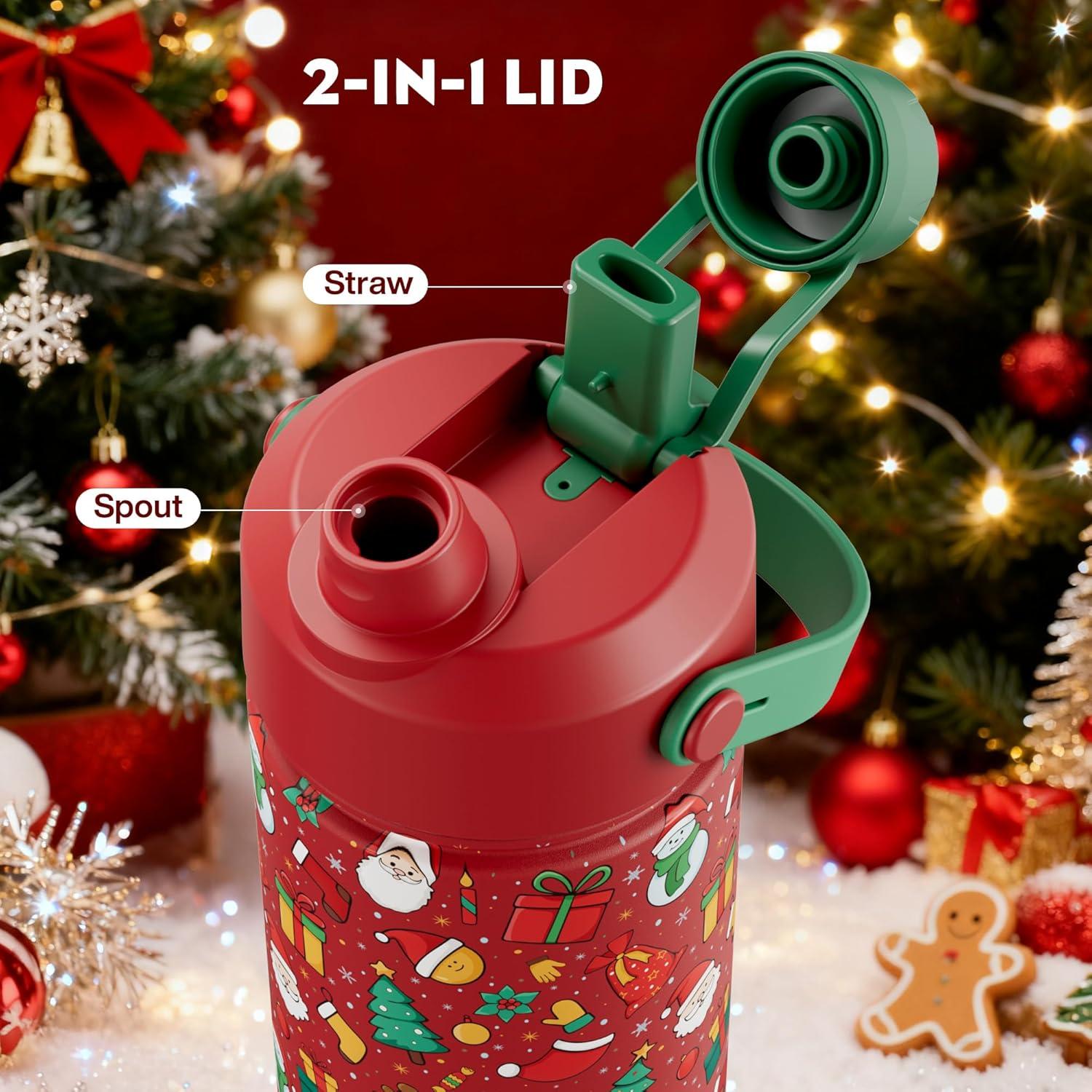 POWCAN 40 oz Insulated Water Bottle with 2-in-1 Straw and Spout Lid, Keep Cold 24H, Leak-Proof, BPA-Free, Double Wall Stainless Steel Water Bottle for Sports, Gym, Travel, and School (Be Free)(Santa’s Jolly Crew)