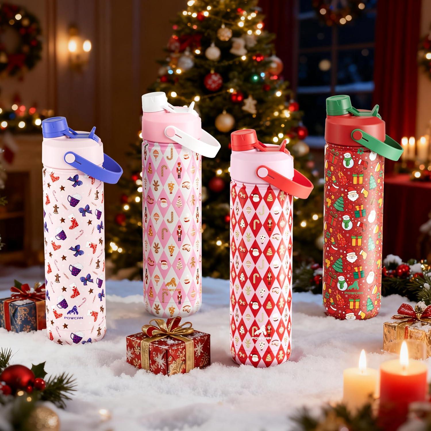 POWCAN 40 oz Insulated Water Bottle with 2-in-1 Straw and Spout Lid, Keep Cold 24H, Leak-Proof, BPA-Free, Double Wall Stainless Steel Water Bottle for Sports, Gym, Travel, and School (Be Free)(Christmas Classics Parade)