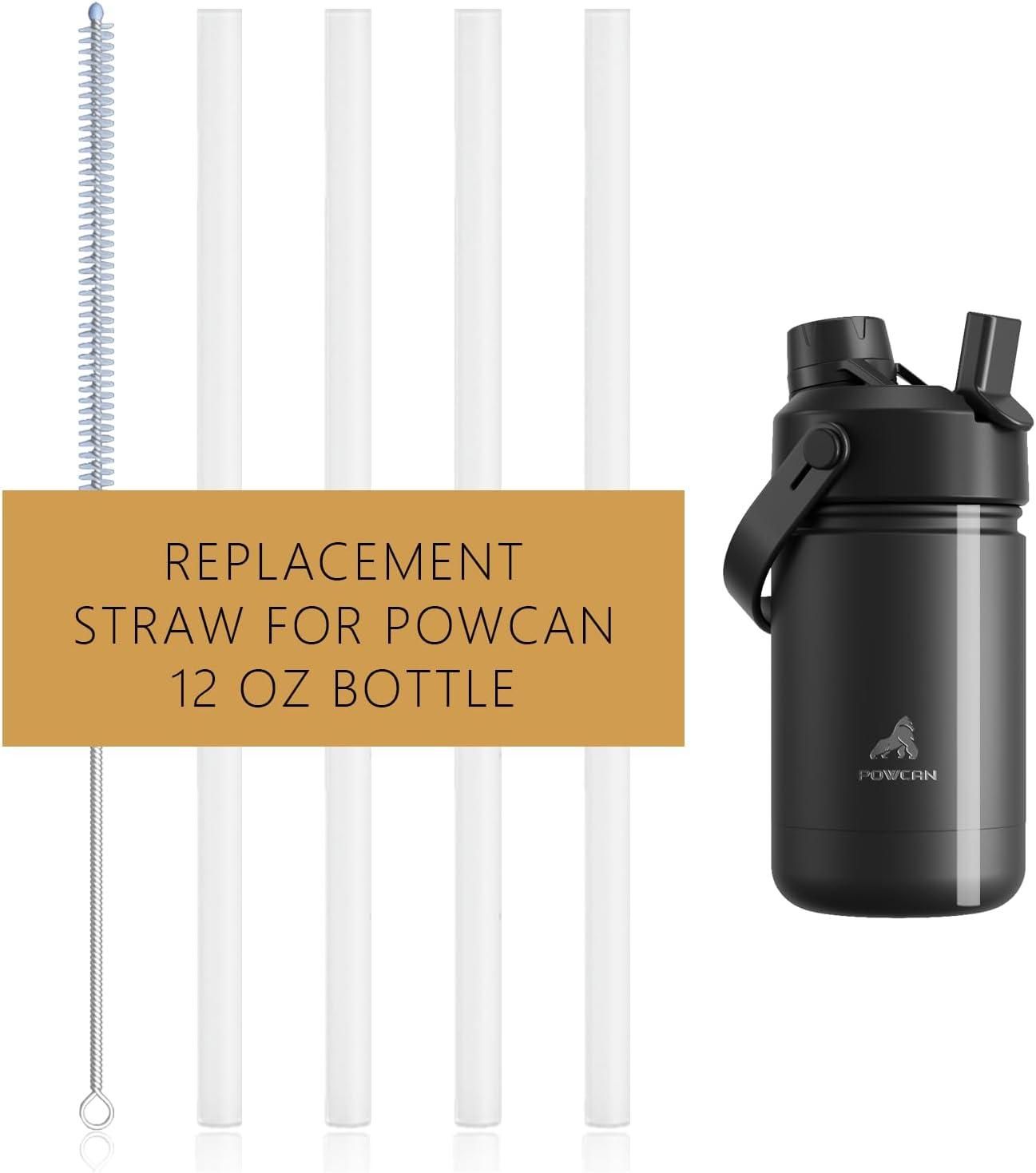 POWCAN Replacement Straw Set, 4 Reusable Straws & 1 Cleaning Brush, Fits 12–64oz Insulated Water Bottles, Food-Grade, Safe and Odor-Free Water Bottle Accessories (18oz)(12 oz)