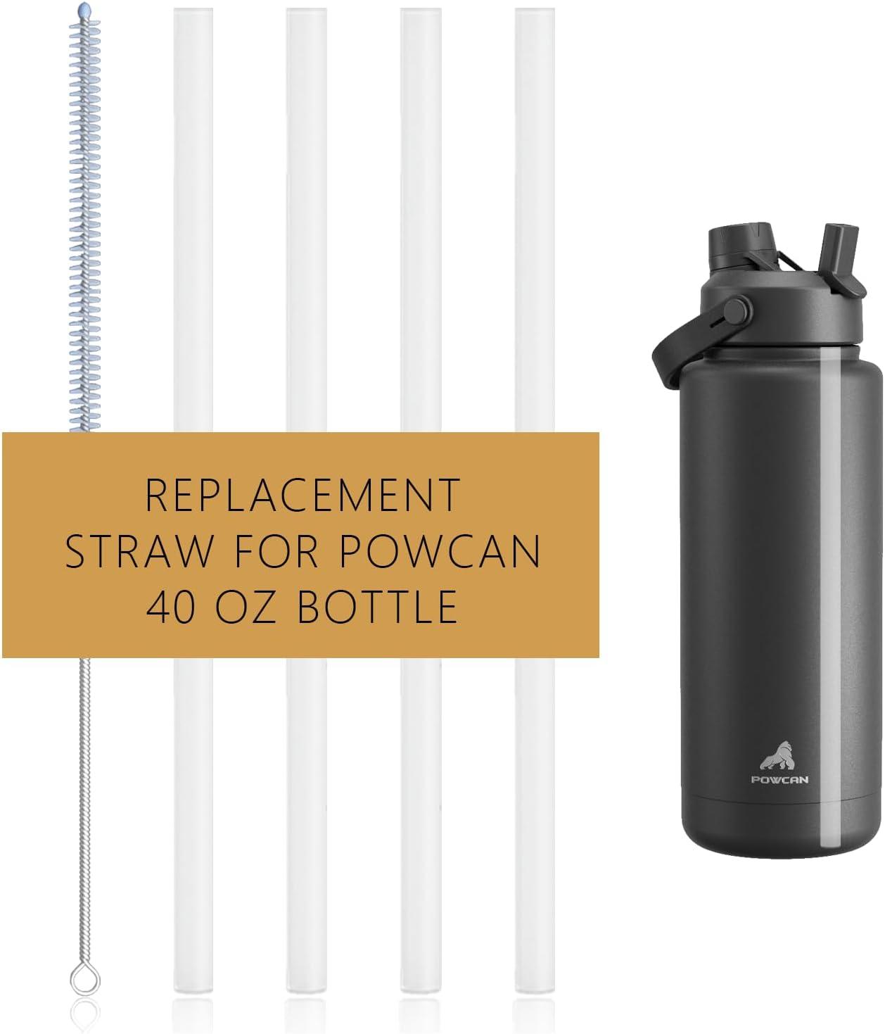 POWCAN Replacement Straw Set, 4 Reusable Straws & 1 Cleaning Brush, Fits 12–64oz Insulated Water Bottles, Food-Grade, Safe and Odor-Free Water Bottle Accessories (18oz)(40 oz)